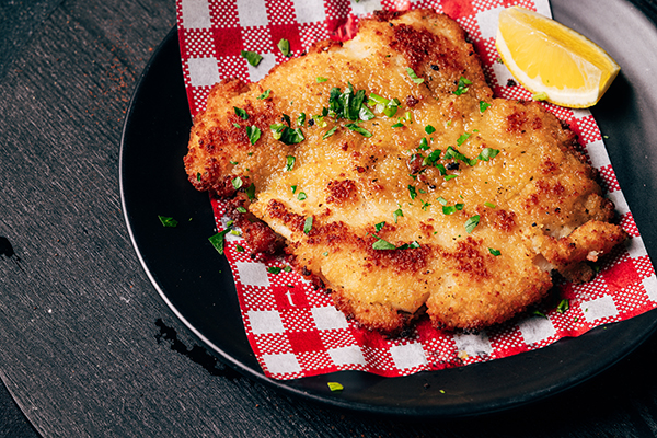 Chicken SchnitzelLightly fried chicken schnitzel with a wedge of lemon$14Desserts