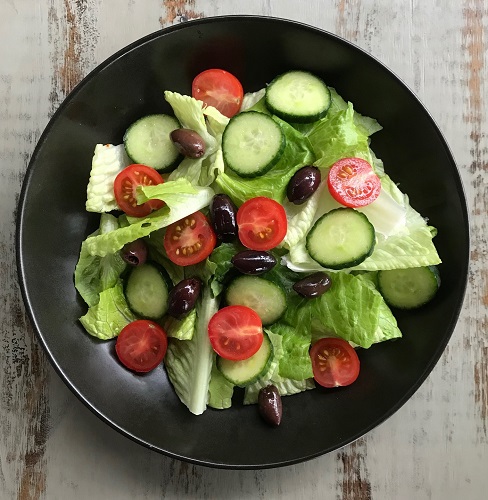 Mixed Lettuce, Onion, Cherry Tomatoes, Capsicum, Cucumber, Olives and a Side of DressingSalad Add On