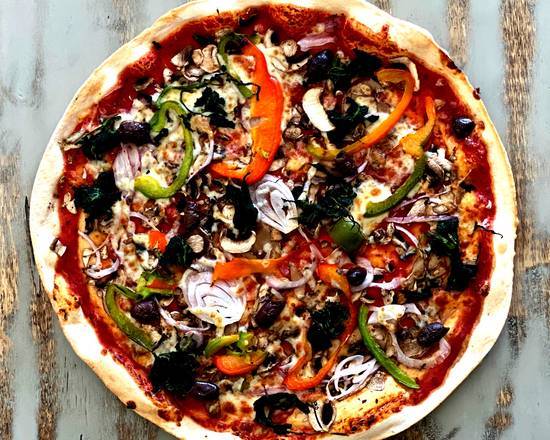 VEGETARIANATomato Base, Capsicum, Onion, Mushrooms, Olives, Spinach, Oregano, Parmesan, Mozarella, GarlicFrom $20×
